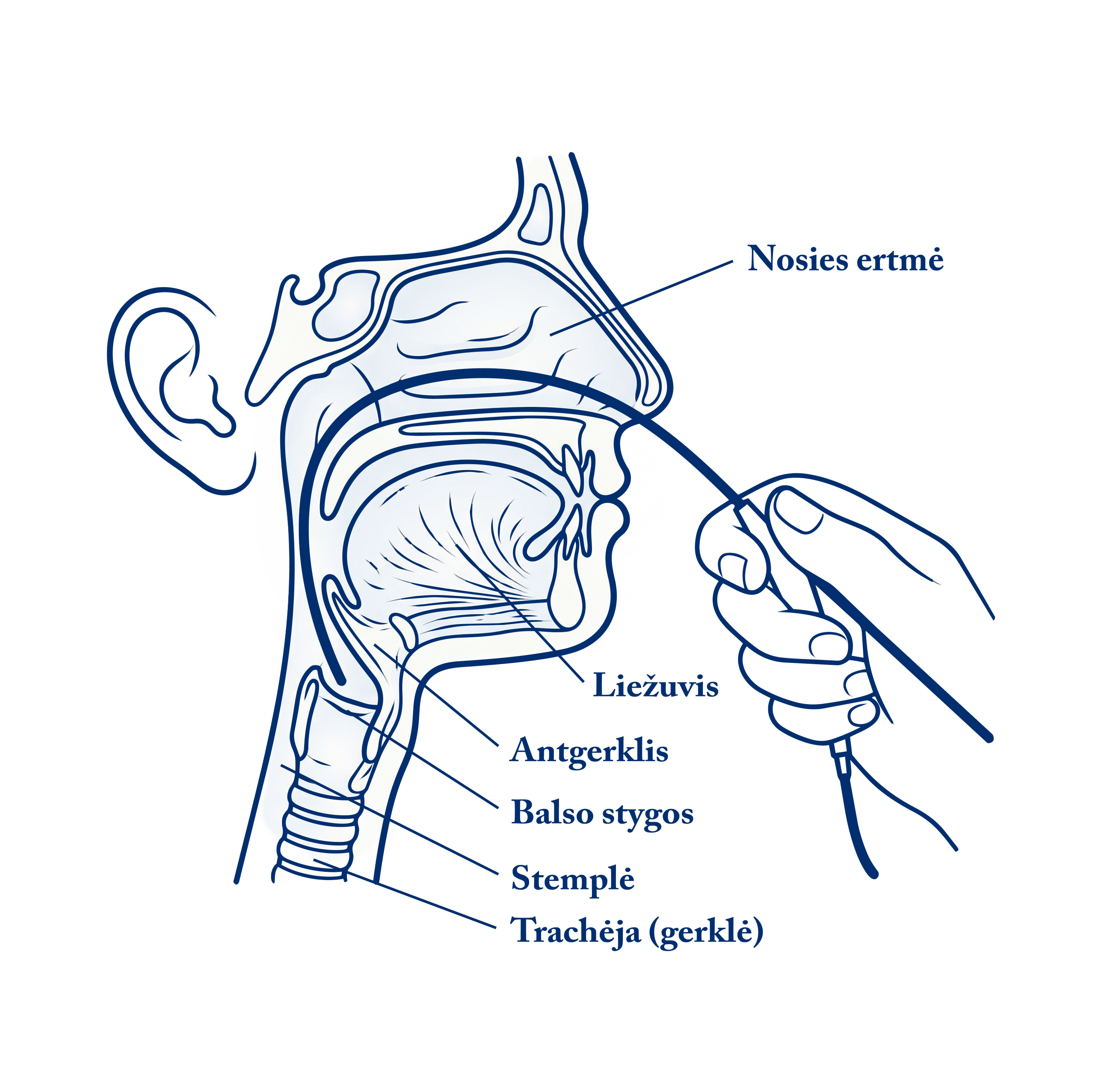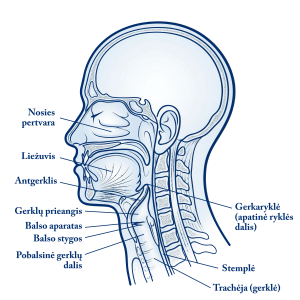Tada atliekama gerklų apžiūra, kitaip laringoskopija.