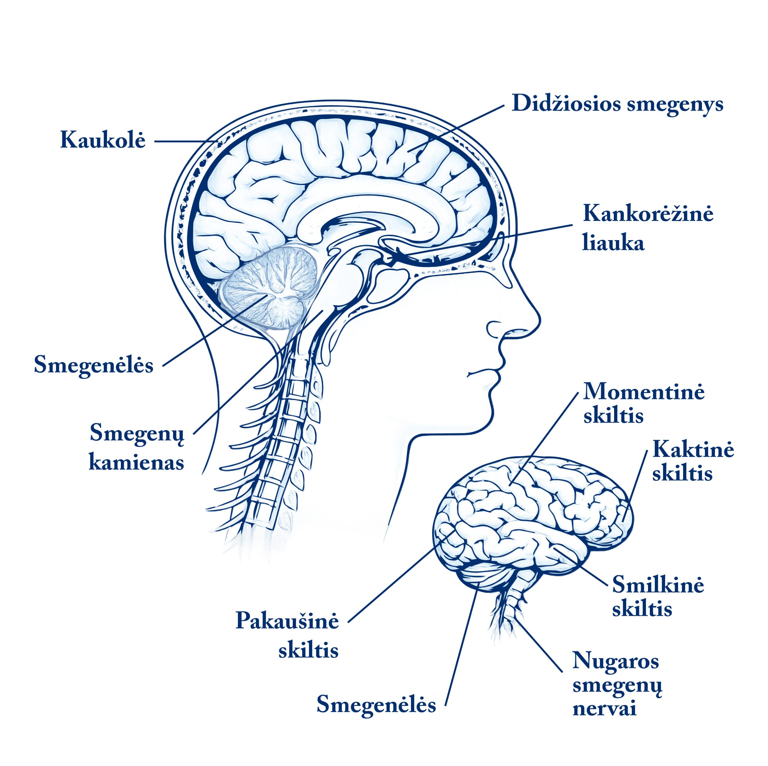 Svarbiausios smegenų struktūros, jų funkcijos (pav.)